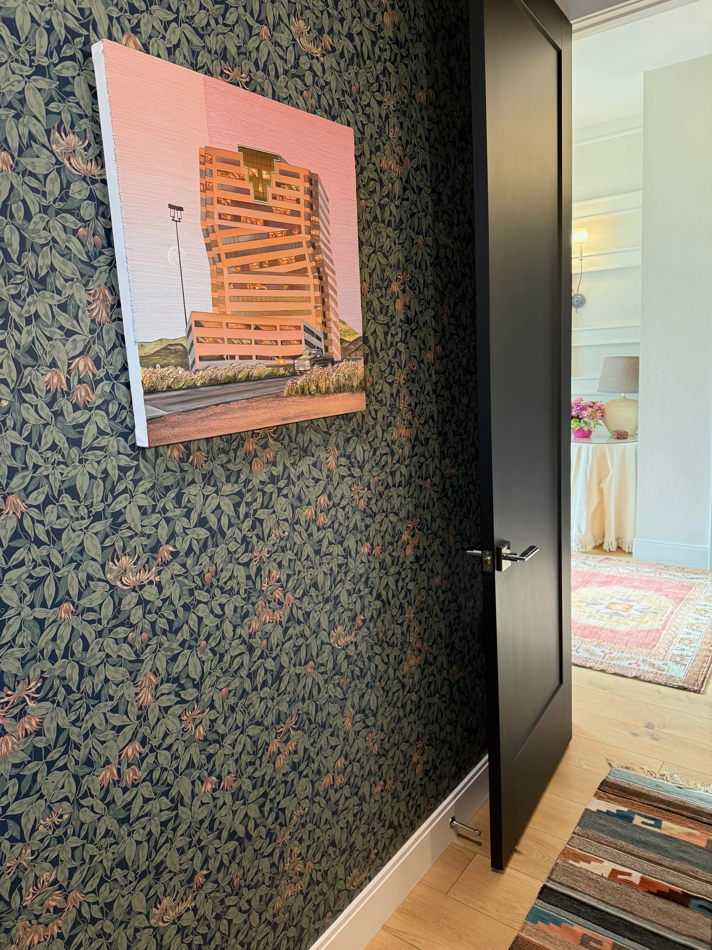 Art with a Story: Instead of a typical bathroom print, I chose a piece of art that truly speaks to me. This oil painting of a building by artist Catherine Allen out of Midland, TX (where I lived briefly as a child) is a bit unexpected for a powder room, but that's precisely what I love about it. It adds a touch of sophistication and pulls you into the space. Mixing in unexpected art in everyday spaces is a cornerstone of a collected home.