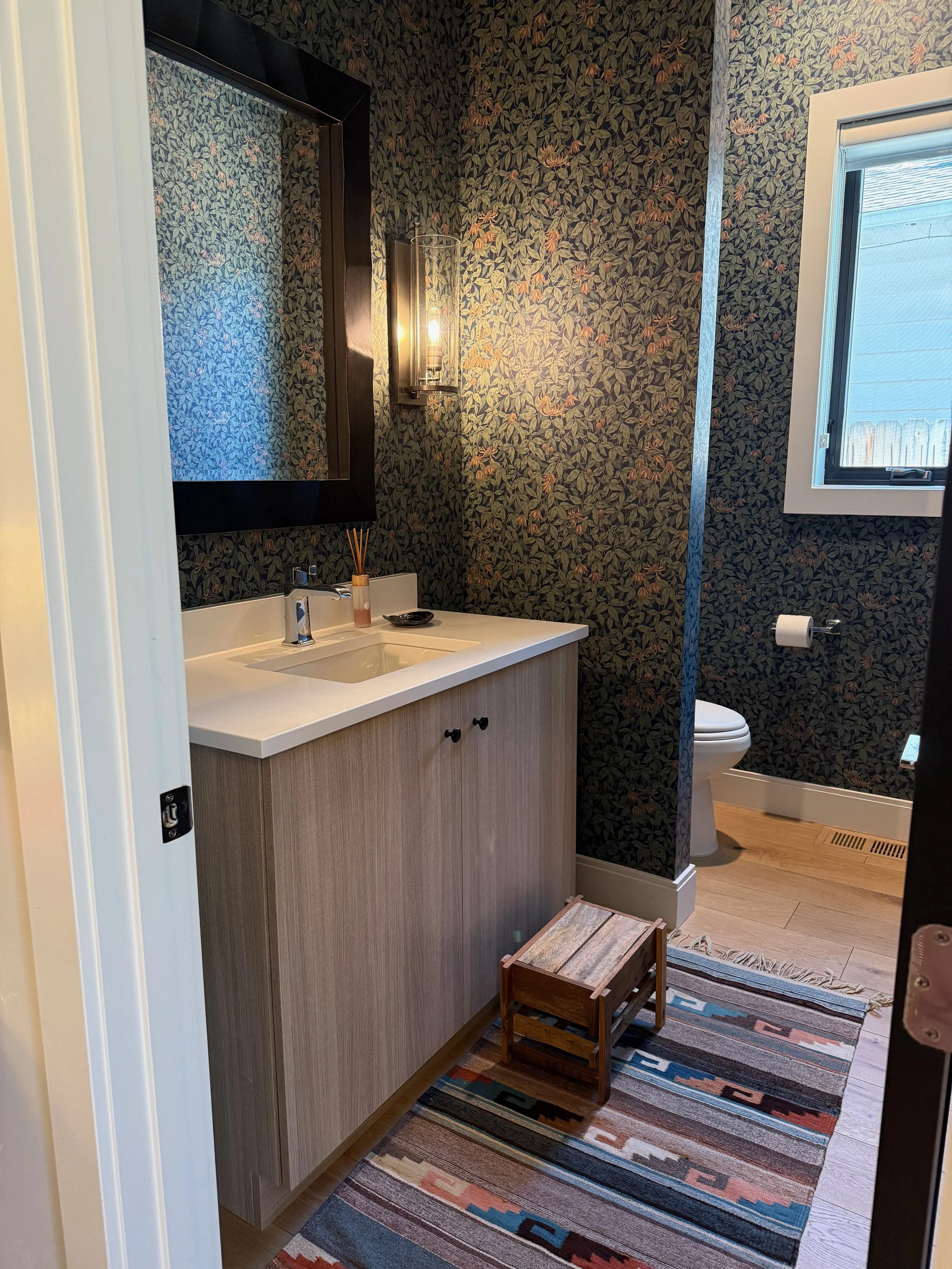 My goal for this small room was to make it an impactful space – a surprising pop of personality within the house. I wanted it to feel collected, a bit moody, and definitely not what you'd expect from its "before" state. The beauty of a small space like a powder bath is that it allows for bolder design choices. It's an opportunity to play with patterns or deeper colors you might not commit to in a larger room.